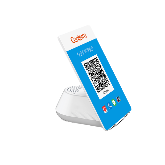 l  分体式设计:支持码牌与音箱一体或疏散使用,,,,,主顾扫码更便捷。 。。。。。。。