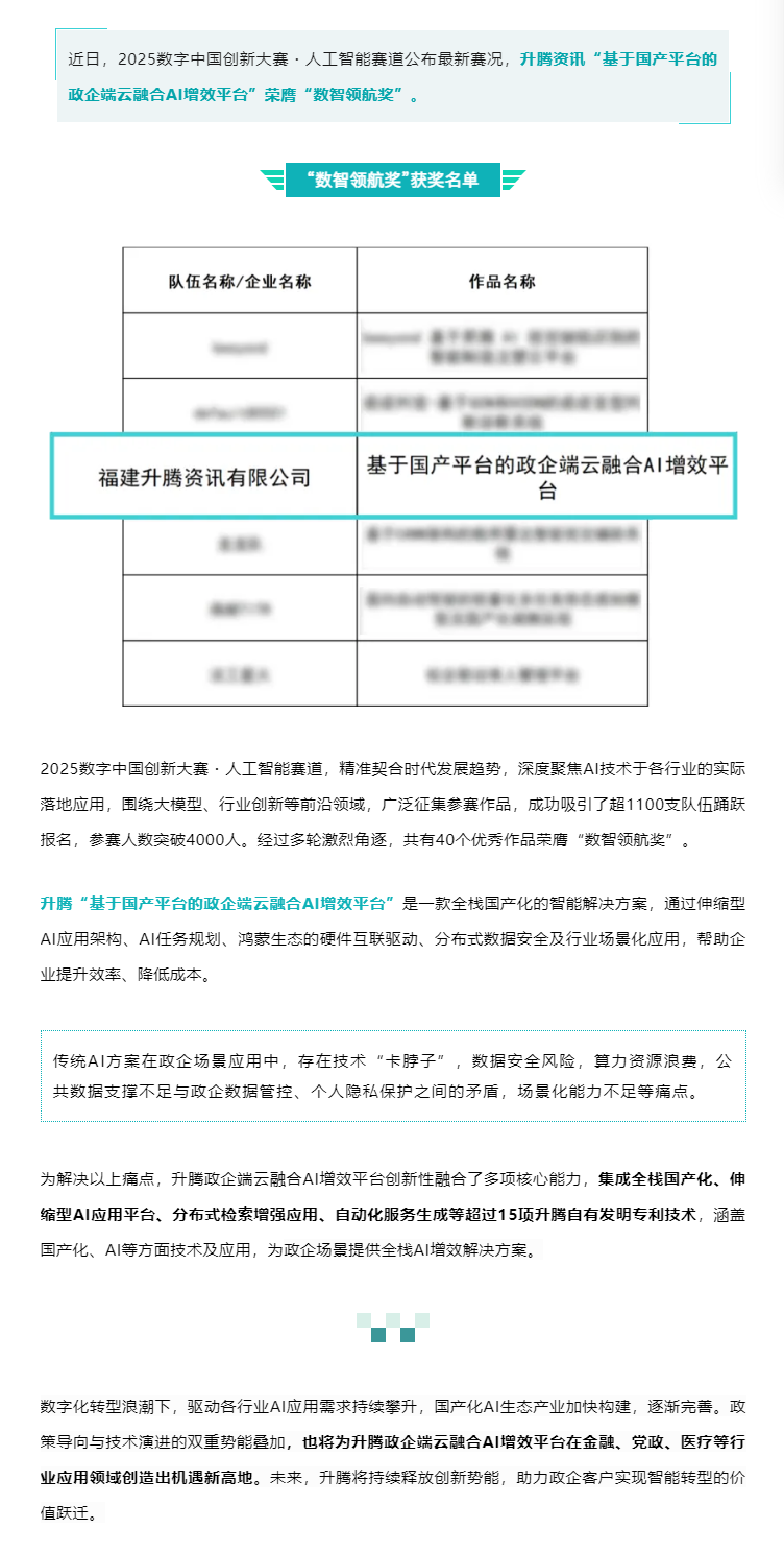 凯时ks资讯斩获2025数字中国立异大赛·人工智能赛道——“数智领航奖”