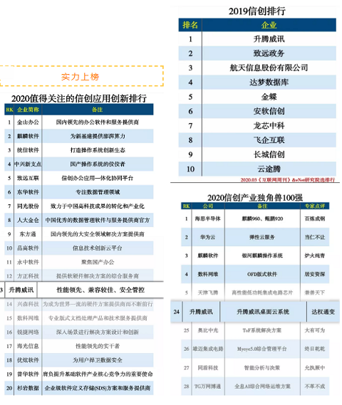 此前,升腾威讯荣获中国信创云排行第一,并上榜2020年信创产业独角兽100强(第24名),是值得关注的信创应用提供商(第13名),一项项殊荣背后,是升腾威讯一步一个脚印走出的自主创新之路。