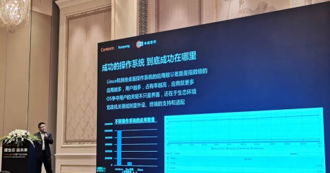 中标软件有限公司副总经理 李滨围绕《鲲鹏麒麟,共建自主创新软硬件生态》主题分享,坚持中标软件的初心,打造国产操作系统新旗舰,通过联合升腾、鲲鹏等企业完善自主创新软硬件生态。