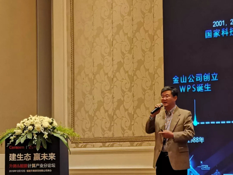 北京金山软件副总裁 刘松海作《WPS&华为升腾共筑高效办公中国梦》主题演讲,金山软件作为国产化办公软件旗帜,基于应用软件,打造轻量级办公,将携手华为、升腾共同推进高效办公中国梦。