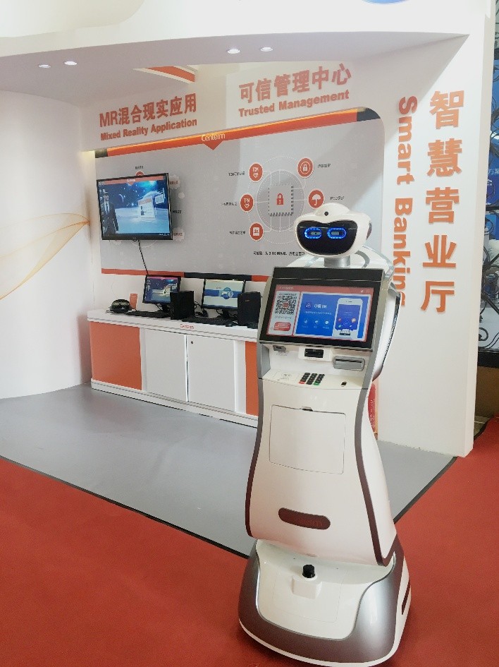 在实体营业厅,机器人“依依”能为客户提供服务导引、业务预约、自助服务、精准营销、休闲娱乐等一站式金融服务,更集成了人脸识别、人证比对等智能识别功能,实现客户进门识别欢迎、语音对话智能业务分流、服务预处理、业务办理、自动巡视、数据营销、专业辅导等全业务智能化服务,适用各大金融网点和移动业务场合。