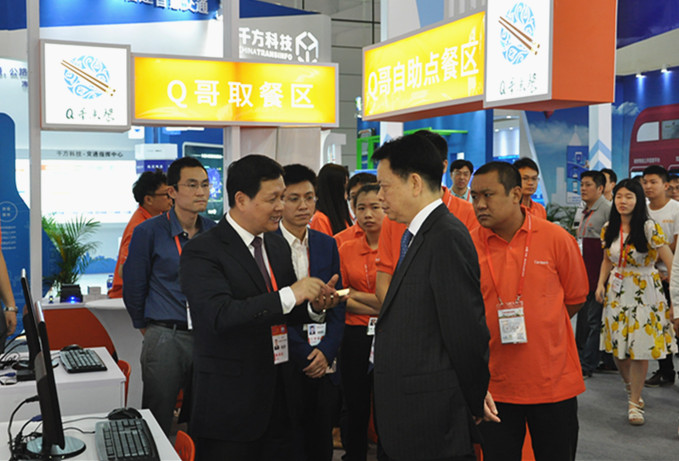 Q哥点餐是面向快餐行业推出的一款基于智能POS机的自助点餐APP,顾客可以自助进行点餐和支付,持凭条取餐。现场,“一分钱畅享Q哥点餐”体验活动引爆全场。体验区将点餐区、取餐区、用餐区全景式呈现快餐店,让参观者实景体验点、付、取的自助点餐三步“取”的快捷和便利。新颖的点餐模式吸引餐饮行业人士驻足询问,洽谈合作。