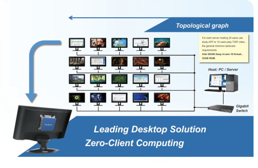 升腾教育行业解决方案是建立在专为资源共享系统设计的零终端C71、C75上,实现单主机服务器带多台独立低功耗虚拟桌面,同时每台云终端可以独立选择不同的桌面操作系统,满足用户个性化的体验需求。方案将安装、升级、维护等所有任务集中于服务器完成,实现了更低成本的VDI传输,减少了硬件设施支持费用,降低因终端设备的失窃、损坏带来的风险。值得一提的是,终端成本仅为PC的一半,三年内仅电费节省就将覆盖全部硬件成本。