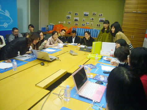 升腾资讯工作人员向与会客户介绍升腾E动终端